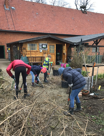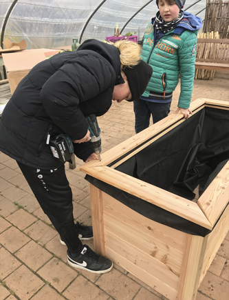 Letzter Termin in den Herbstferien. Die Hochbeete werden winterfest gemacht.