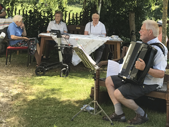 Gartenmusik - Herr Saborowski spielt mit seinem Akkordeon auf. |